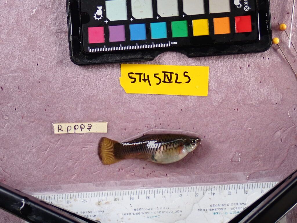 Using data from an ongoing long-term experiment, we are investigating the growth and survival of hybrid swordtails grown in experimental tanks along an elevational gradient to understand how environment shapes the phenotype of otherwise genetically identical individuals. If environmental gradients play a major role in driving genetic incompatibilities (through selection for phenotypes best adapted to a particular environment), we predict that hybrids will adopt the dominant phenotype of parental strains at that elevation. Malakai Olivares conducted her Biology undergrad thesis using a small subset of these data to begin testing this hypothesis, and we are continuing our tagging work with the Rosenthal lab at the University of Padua, Italy in pursuit of answering these questions. This work is conducted at the CICHAZ field station in Calnali, Hidalgo, Mexico.